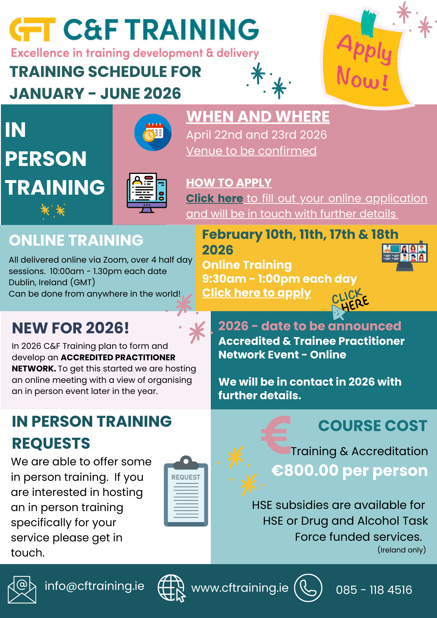C&F Training are please to announce our training schedule for Spring 2026
